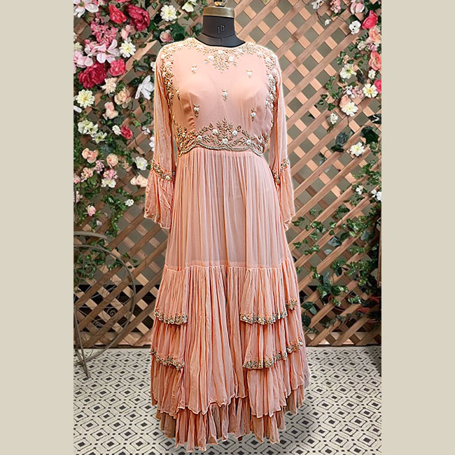 HomeWestern WearGown Classic layered peach Gown